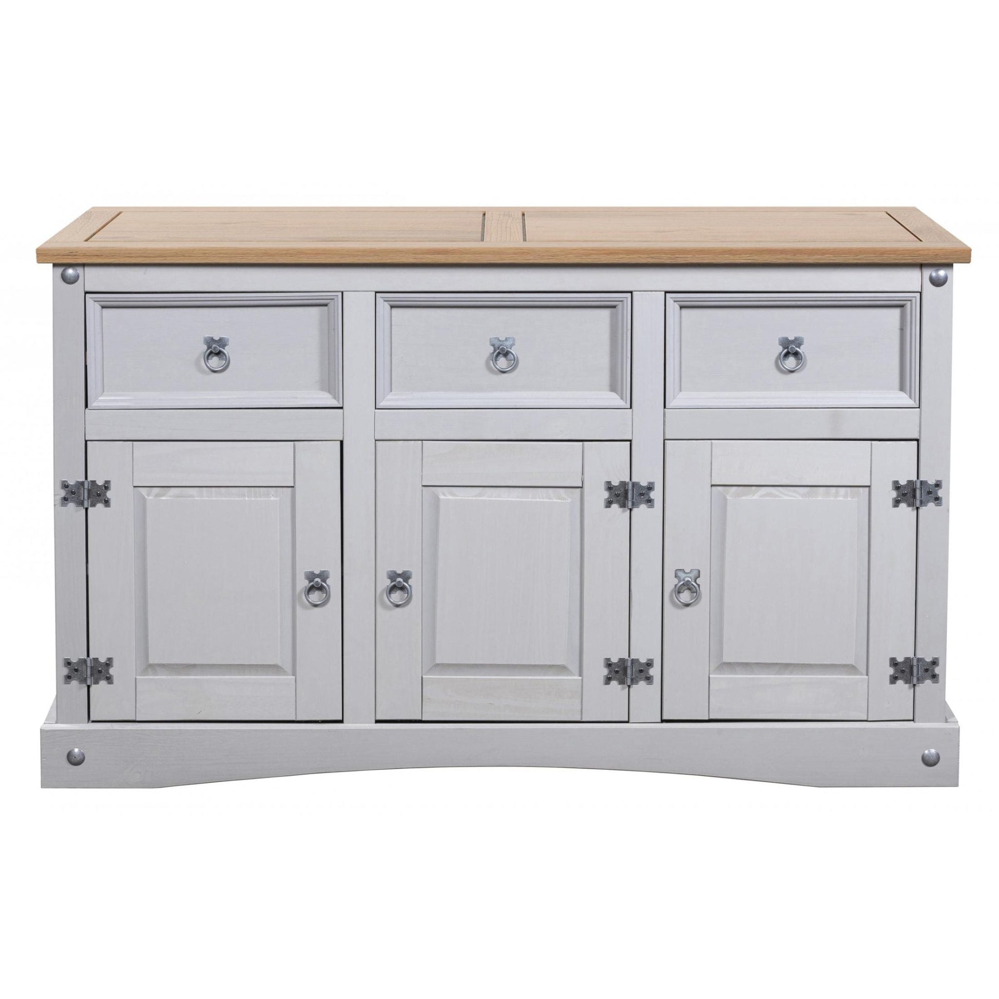 Corona Grey Sideboard 3 Door & 3 Drawer, 1320W x 440D x 840H, Distressed Solid Waxed Light Pine