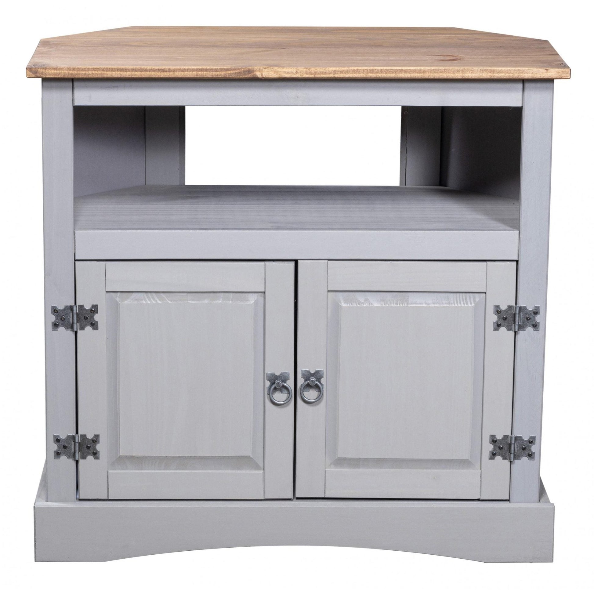 Corona Grey TV Cabinet Corner 1 Drawer, 920W x 510D x 530H, Distressed Solid Waxed Light Pine