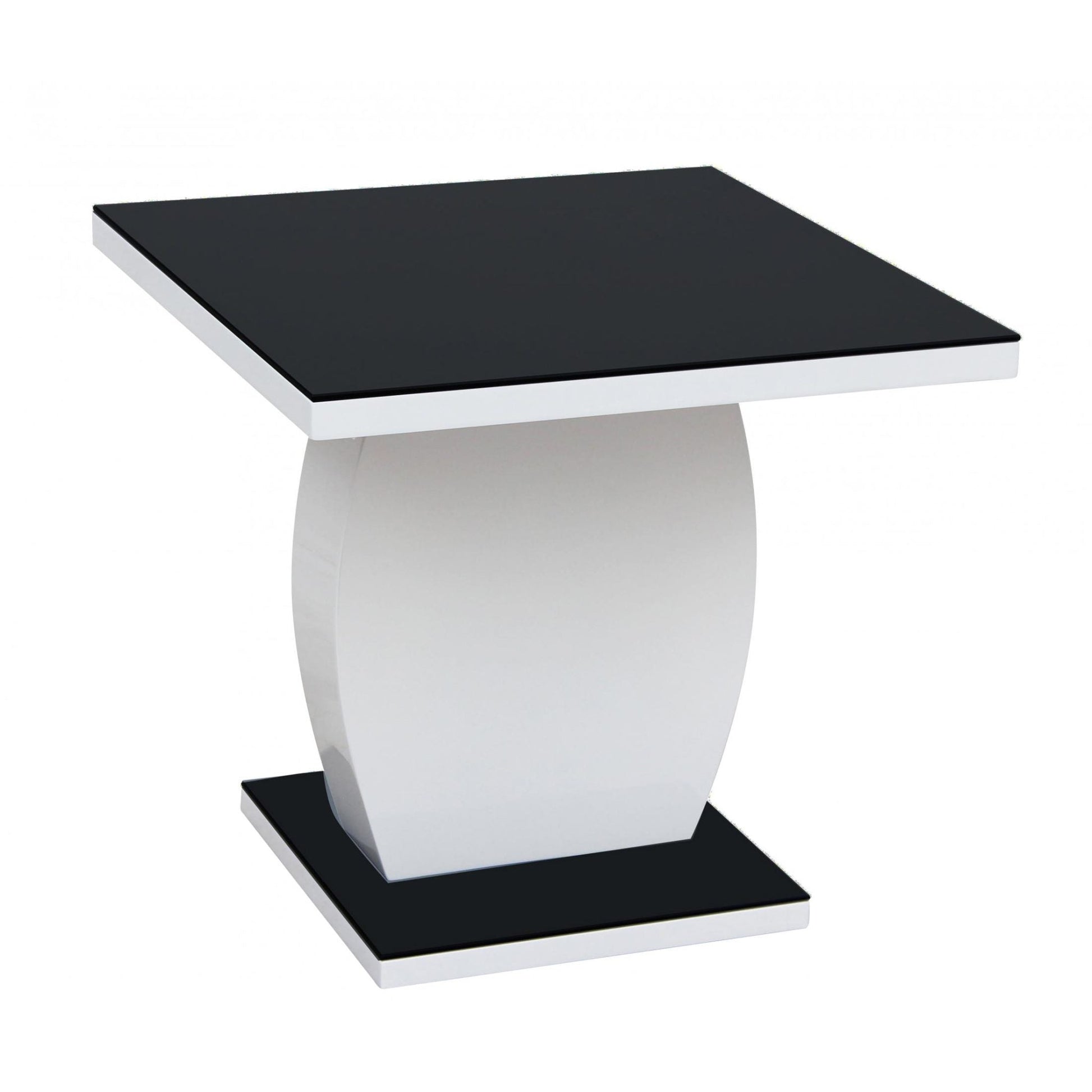 Edenhall Lamp Table High Gloss with Black Painted Glass Top 600W x 600D x 550H Black & White