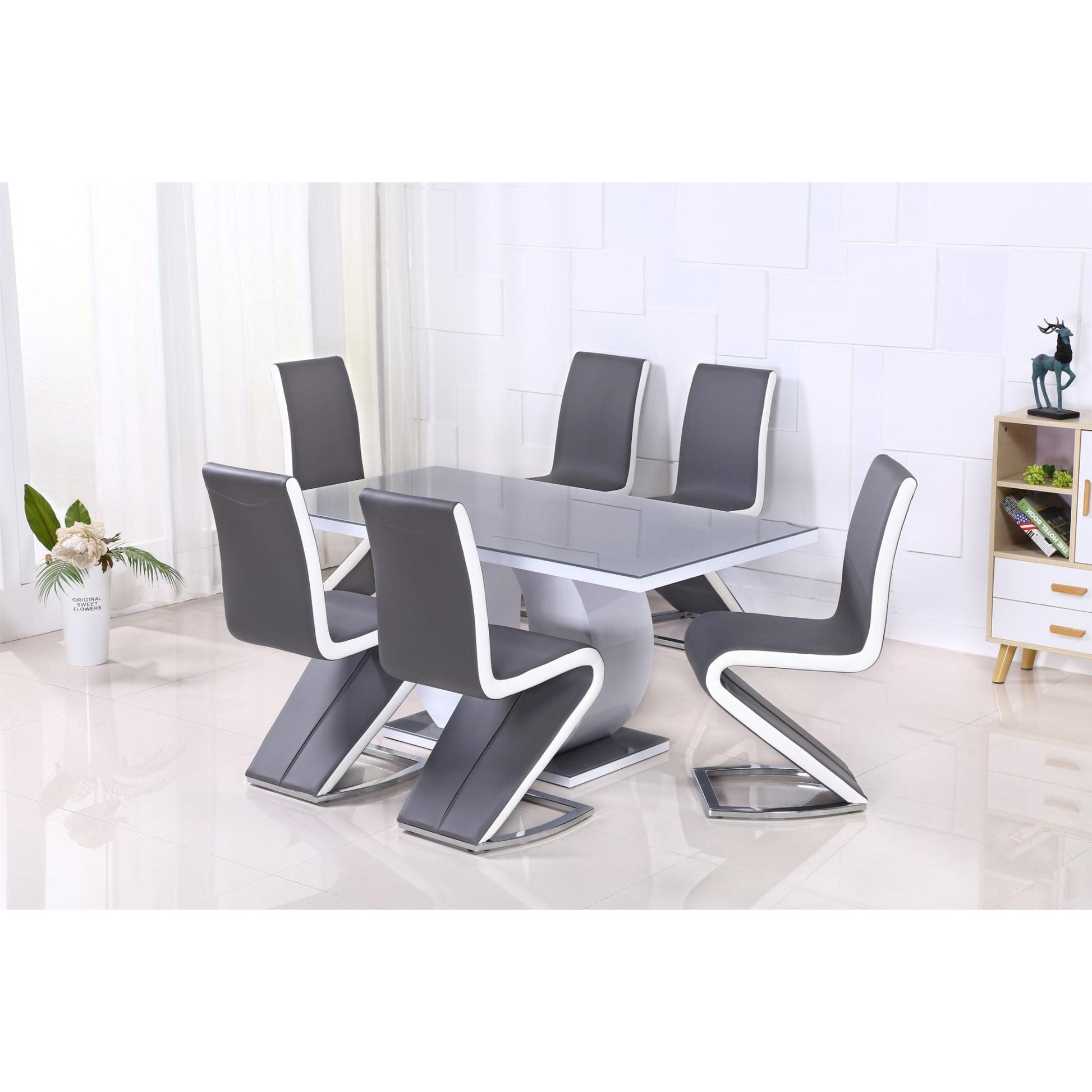 Edenhall Grey High Gloss Dining Set with Grey Painted Glass Top