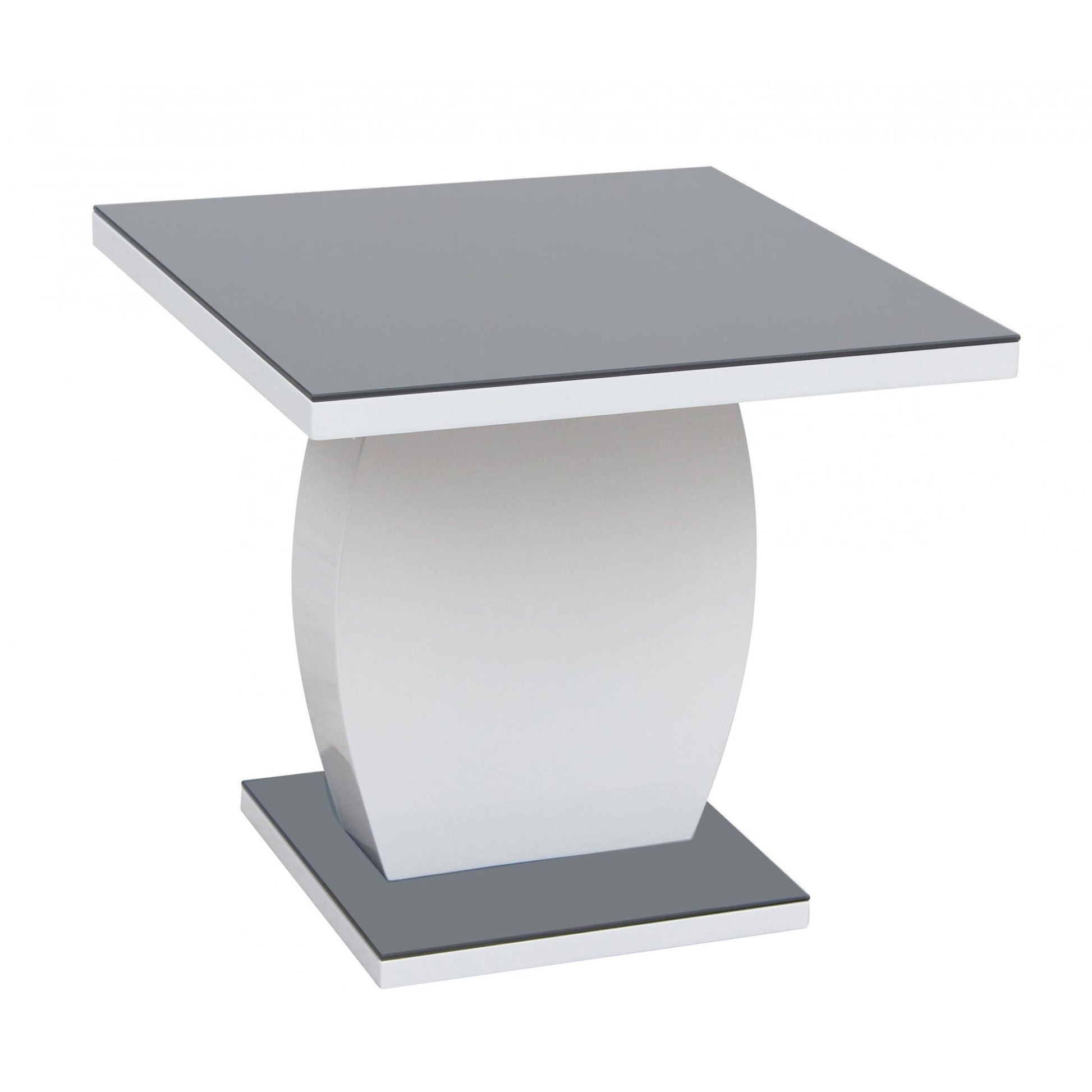 Edenhall Grey Lamp Table High Gloss with Black Painted Glass Top, 600W x 600D x 550H, Grey & White