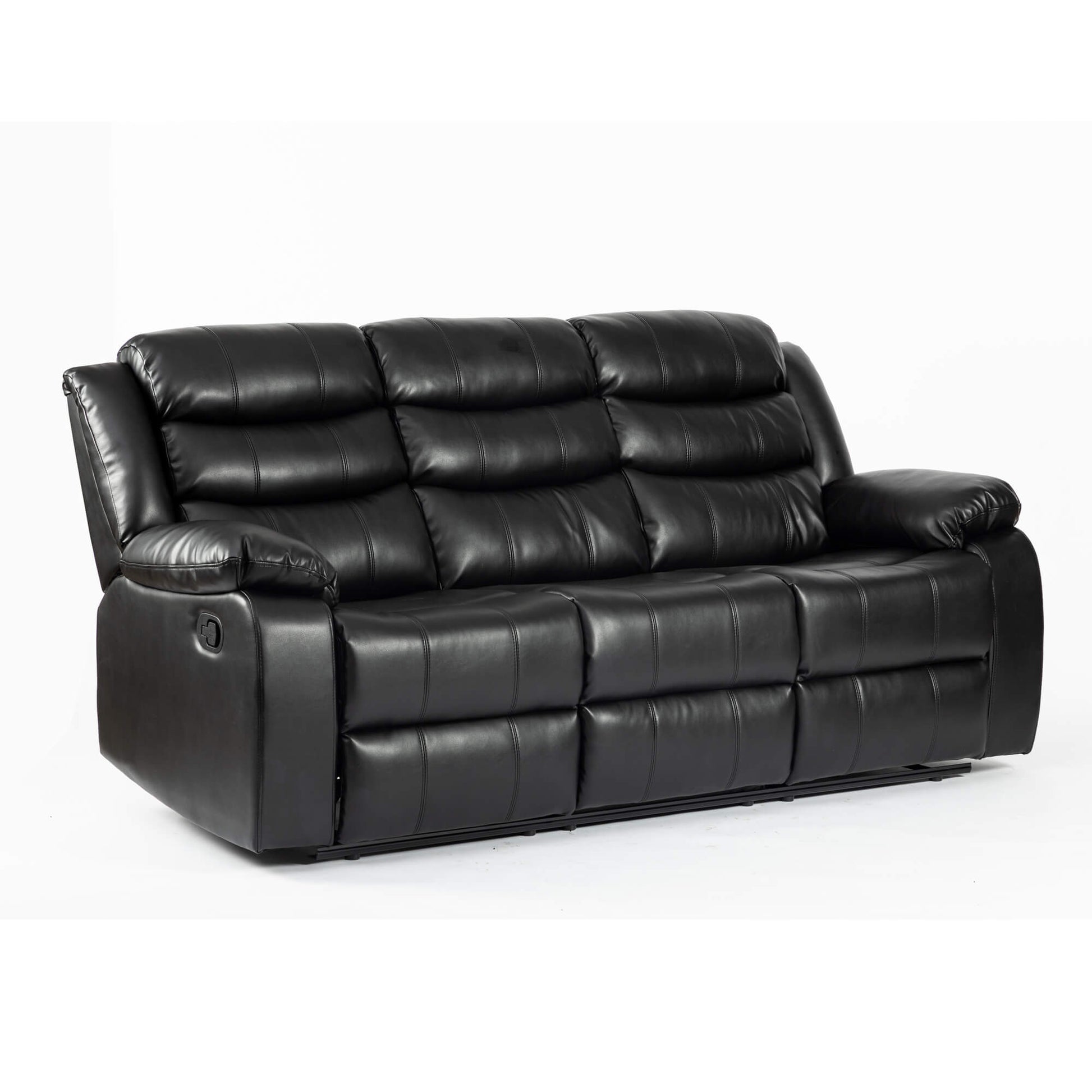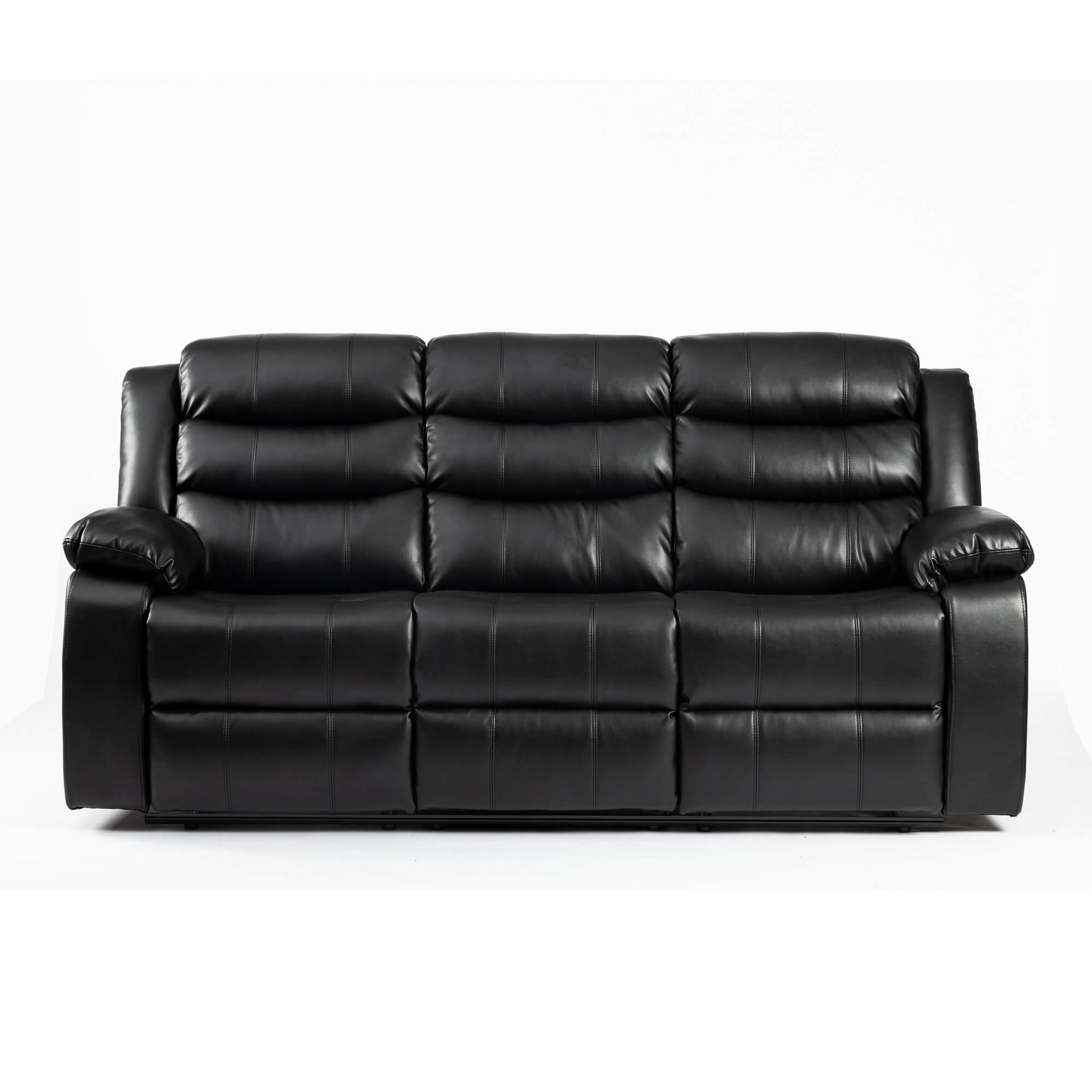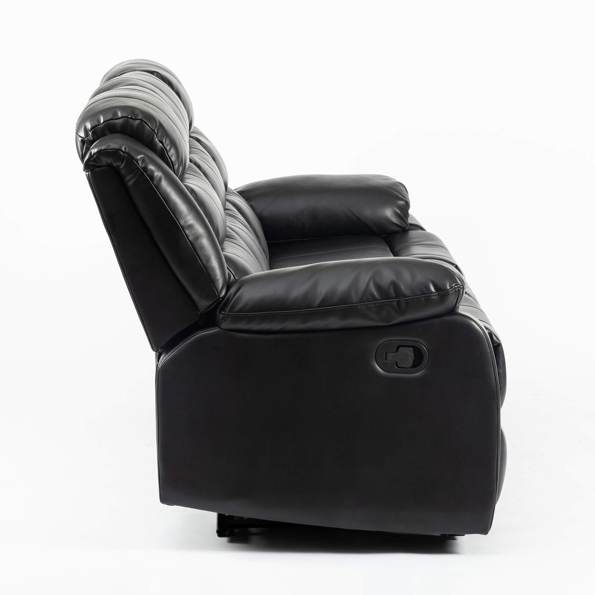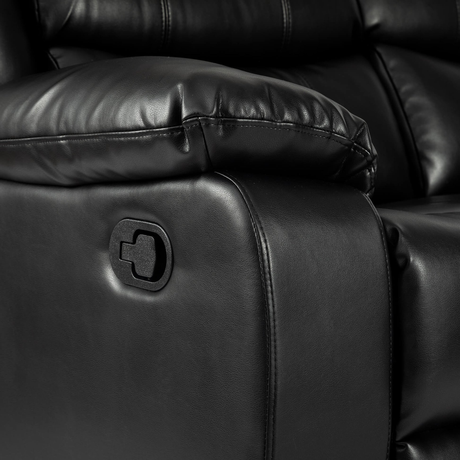 Turin Recliner Leather Aire 3 Seater Black, 2060W x 970D x 1020H