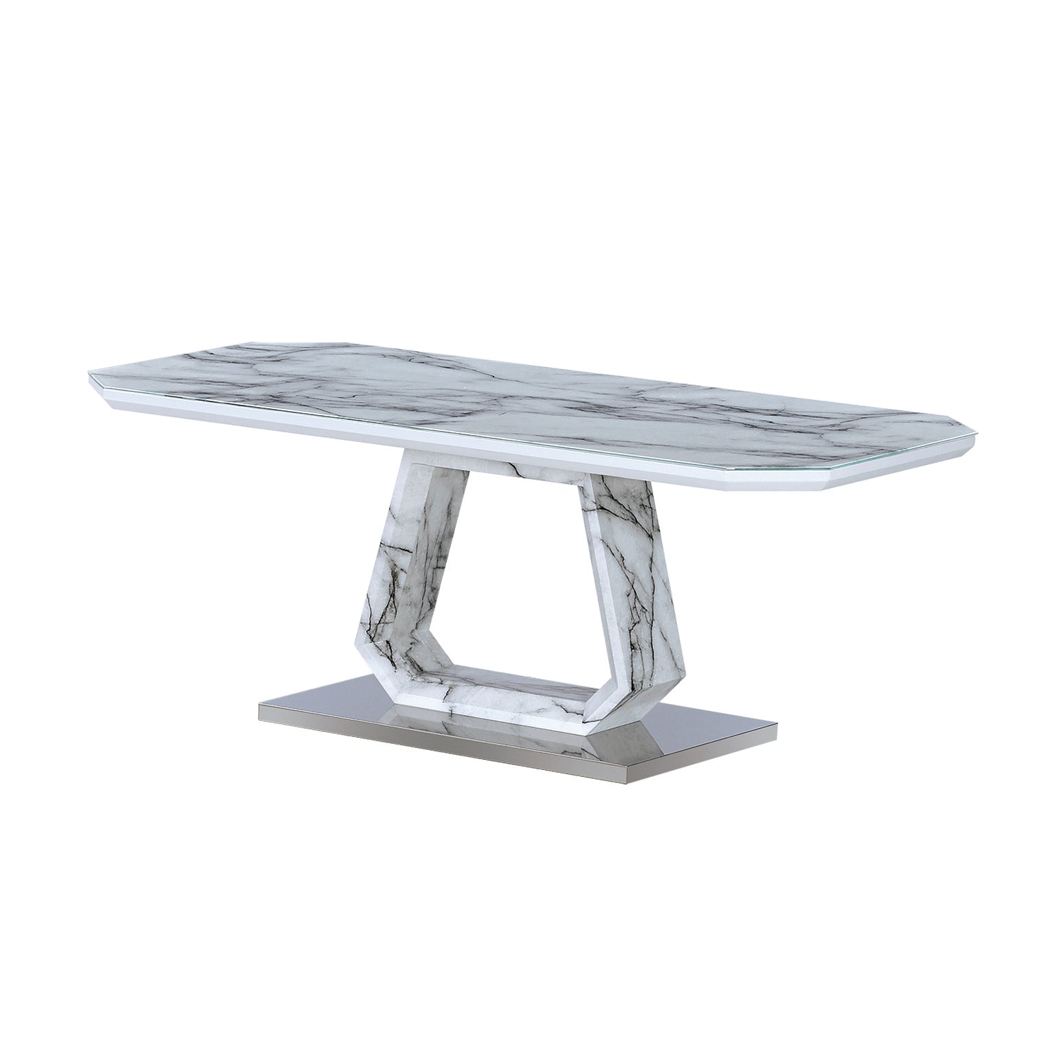 Marble Effect Glass Top, Stainless Steel Base